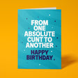 This is not your average birthday card. This is for mates who can take it and dish it out in equal measure. Featuring the message "From one absolute cunt to another Happy Birthday" on a striking turquoise design, this rude birthday card is peak friendship - the kind where you roast each other mercilessly and nobody's offended. If you're looking for maximum impact and minimum subtlety, this is your card. It's the kind of birthday greeting that shocks people, makes them laugh, and respect the sheer audacity of your friendship dynamic.